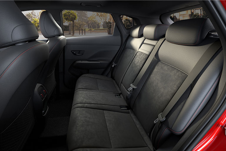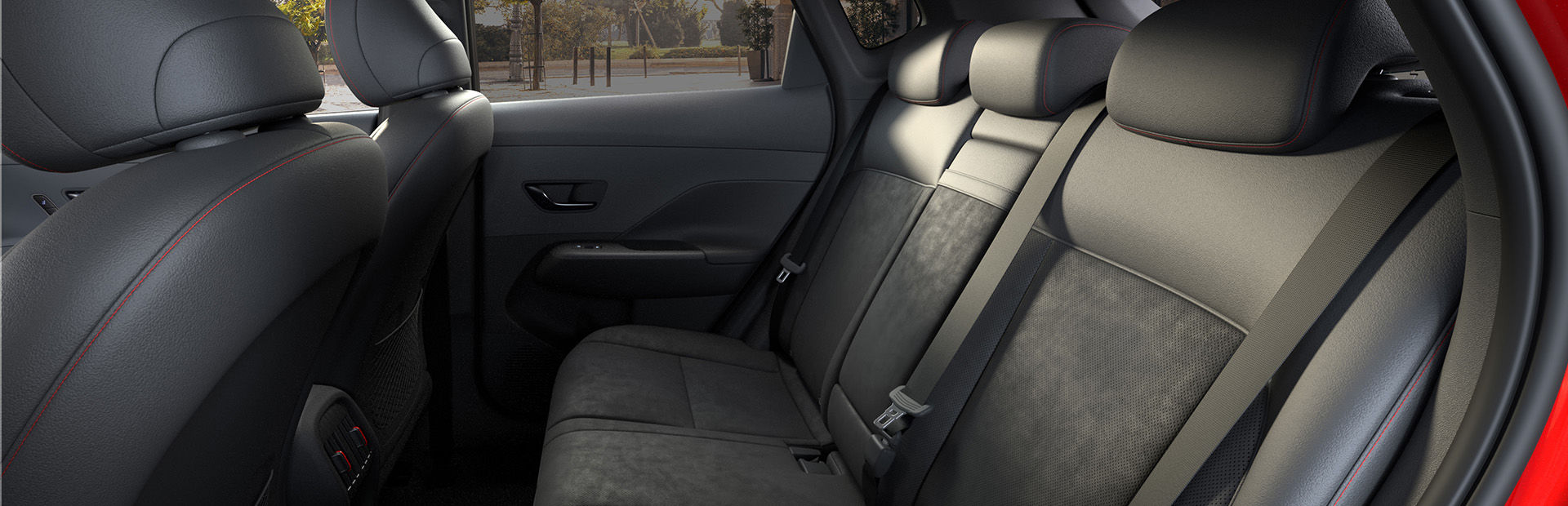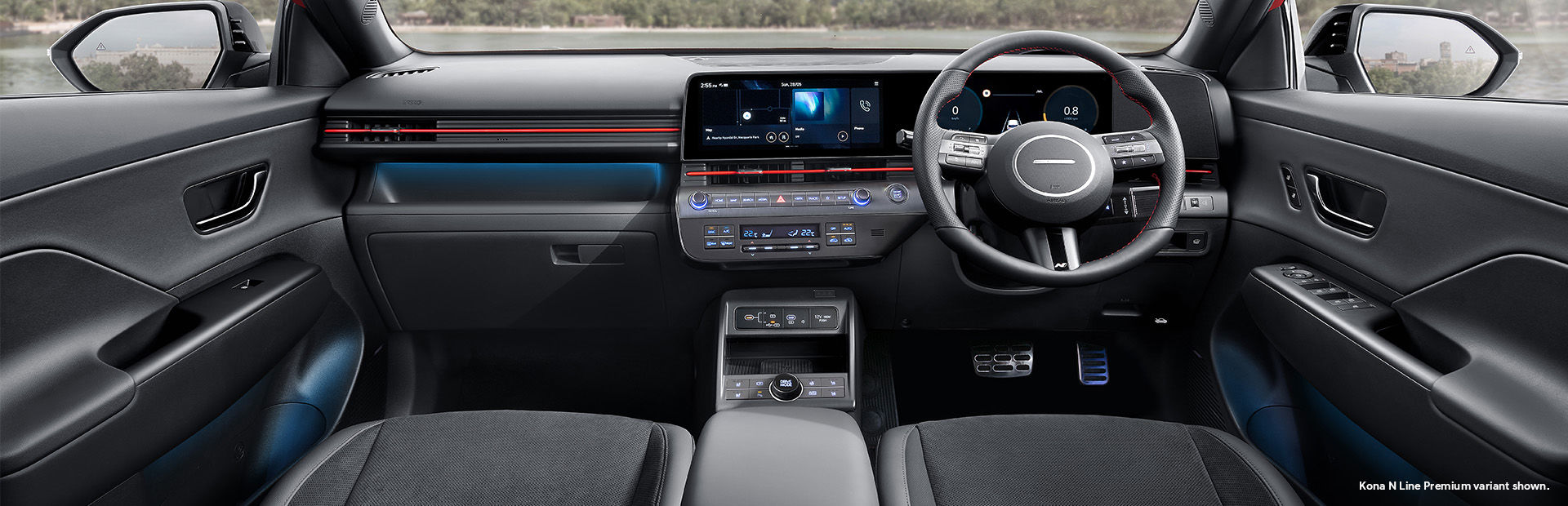 Step inside the Hyundai KONA N Line Hybrid and discover an interior that is pure sports sophistication. N Line exclusive leather appointed[P5] Alcantara® seats, active red highlights and N Line signature accents combine to create an exhilarating driving environment.